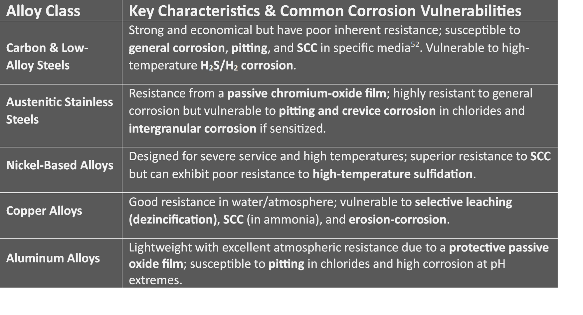 Strategic material selection is one of the primary pillars of effective corrosion control. While no single material is immune to degradation in all environments, understanding the inherent characteristics and common corrosion vulnerabilities of major alloy families is crucial for reliable and safe design. The following table provides a comparative overview, summarizing the key vulnerabilities a designer must consider for each major alloy class.